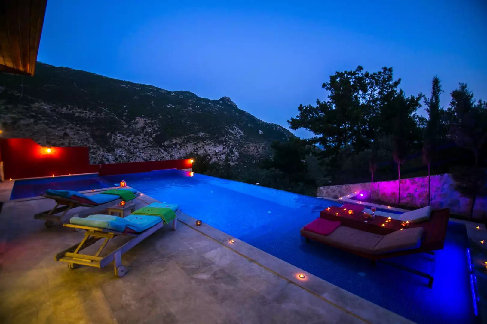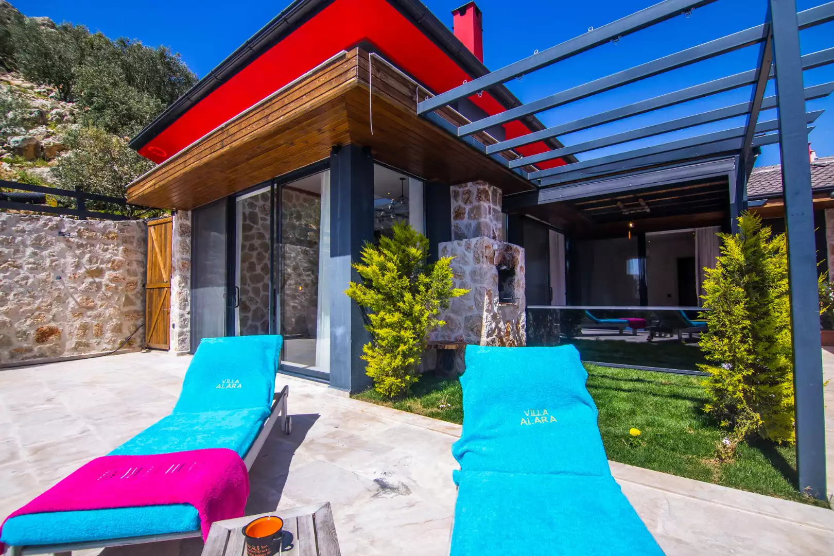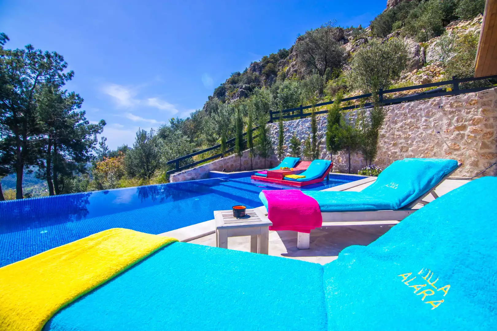 Kalkan İslamlar bölgesine konumlanmış muhteşem doğa manzarasına sahip, muhafazakar, özel havuzlu, balayı çiftlerine uygun, kiralık, tatil villasıdır.  Kiralık Villa Alara, muhafazakar villalar, balayı villaları, kapalı havuzlu villalar ve çocuk havuzlu villalar kategorisinde yer alan doğayı hissettiren konumu, tertemiz havası ve gözlerden uzakta kalan yapısı ile sizlere özgür bir tatil ortamı sunuyor. Doğa ile baş başa kalabileceğiniz binamız oldukça lüks bir şekilde dekore edilmiştir. Havuz terası siz değerli misafirlerimizin keyifli bir vakit geçirmesi için oldukça geniş planlanmış olup havuz başında çocuk havuzu & jakuzibulunmaktadır. Ayrıca villamızın havuz terası korunaklı olup etraftan görünmemektedir. Yepyeni dizaynı ile huzur veren villamızın 2 yatak odası bulunmaktadır.
