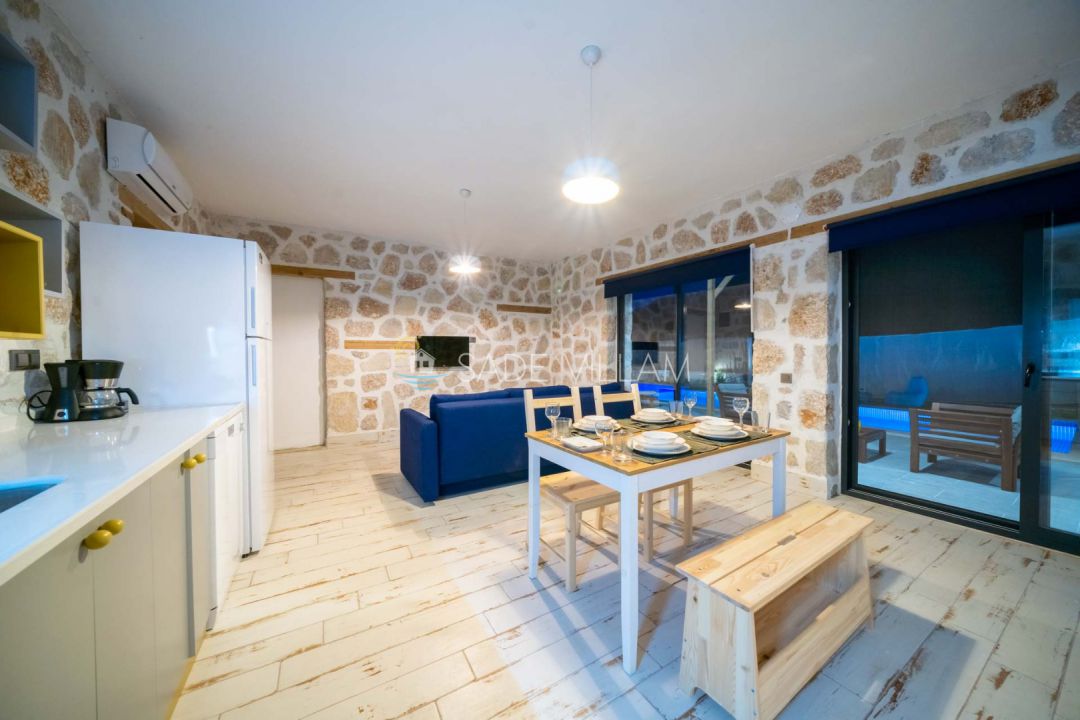 Kalkan Sarıbelen bölgesinde yemyeşil doğa içerisinde konumlandırılmış özel yüzme havuzlu kiralık tatil villasıdır. Kiralık Villa Bonus 1, balayı villaları, muhafazakar villalar ve doğa içerisinde villalar, jakuzili villalar kategorisinde yer alan 1 yatak odalı 2 kişi konaklama olanağına sahiptir. Villamız son teknoloji mutfak aletleri ile döşenmiş modern Amerikan mutfağı &  salondan oluşmaktadır. Doğayı hissettiren konumu, tertemiz havası ve gözlerden uzakta kalan yapısı ile sizlere özgür bir tatil ortamı sunuyor.  Balayı çiftlerimiz için ideal seçenekler arasındadır.