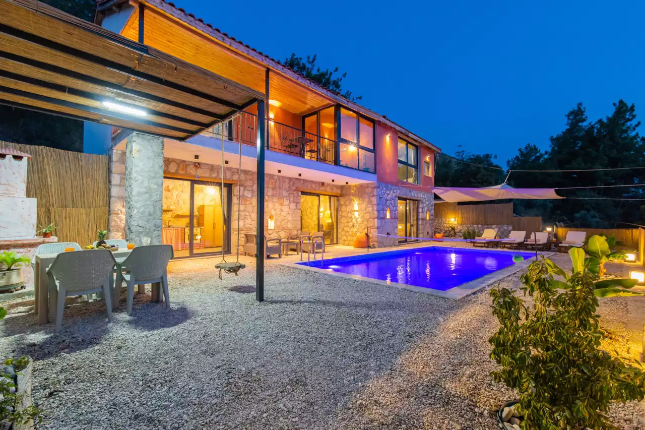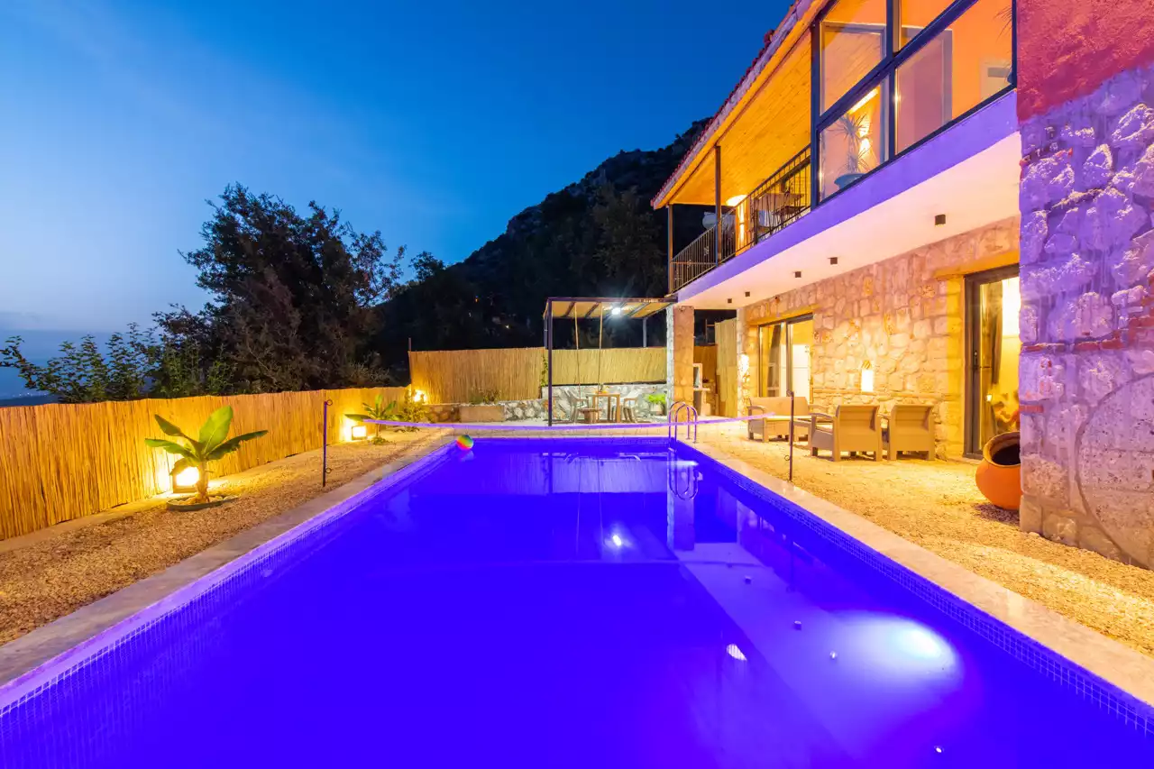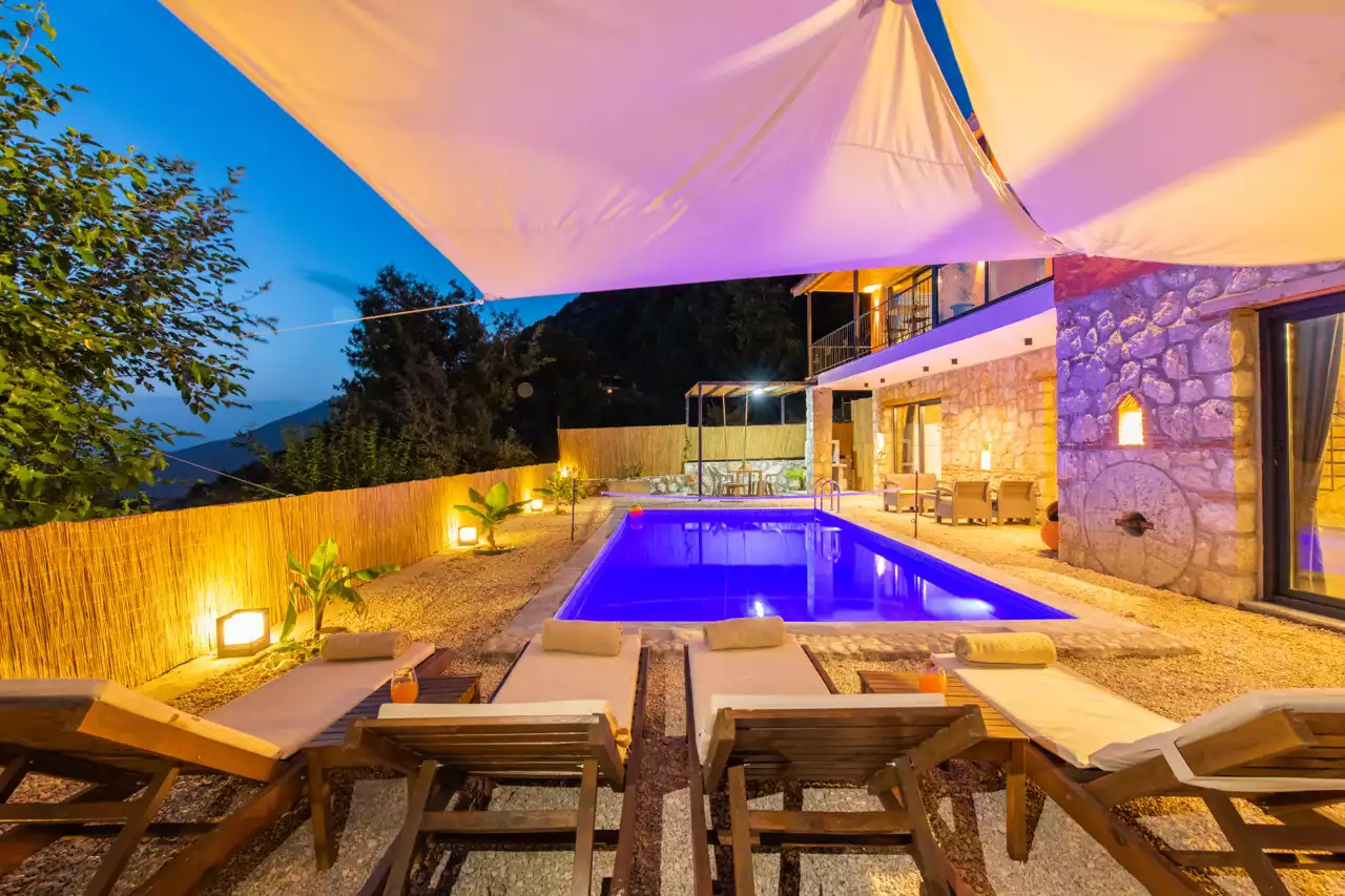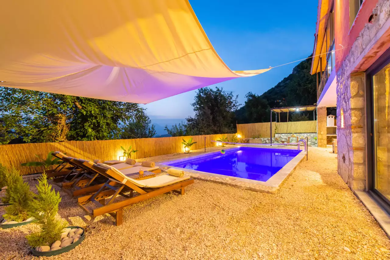 Kalkan Üzümlü bölgesinde konumlandırılmış 4 kişilik, doğa içerisinde, muhafazakar, jakuzili, özel havuzlu kiralık villadır. Kiralık Villa Grand Ata, muhafazakar villalar, jakuzili villalar, doğa içerisinde villalar ve balayı villaları kategorisinde bulunmaktadır. Villamız 2 yatak odalı 4 kişi konaklama olanağı sahip olup; sizlere unutulmaz bir tatil sunmaktadır. Ayrıca uçsuz bucaksız manzaraya sahip olan villamız, sizleri kuş sesleri ve doğanın dinginliğiyle de mest eder. Sessiz, sakin bir ortam içerisinde ki villamız, doğayı ve köy yaşantısını keşfetmek isteyen tatilcilere evlerindeki rahatı ve huzuru aratmayacak modern standartlara uygun döşenmiştir. Balayı çiftleri ve muhafazakar aileler için uygun olan villamızda ayrıca jakuzi bulunmaktadır.