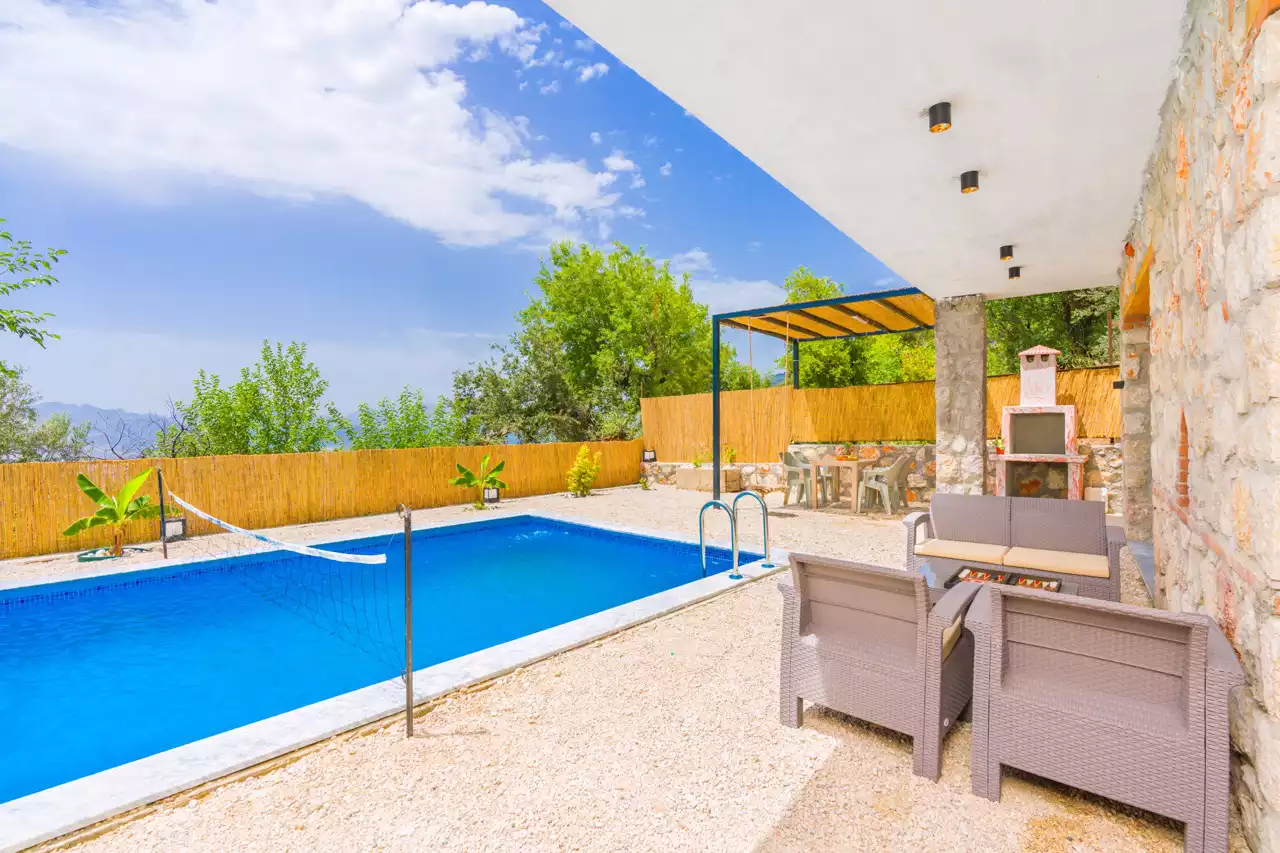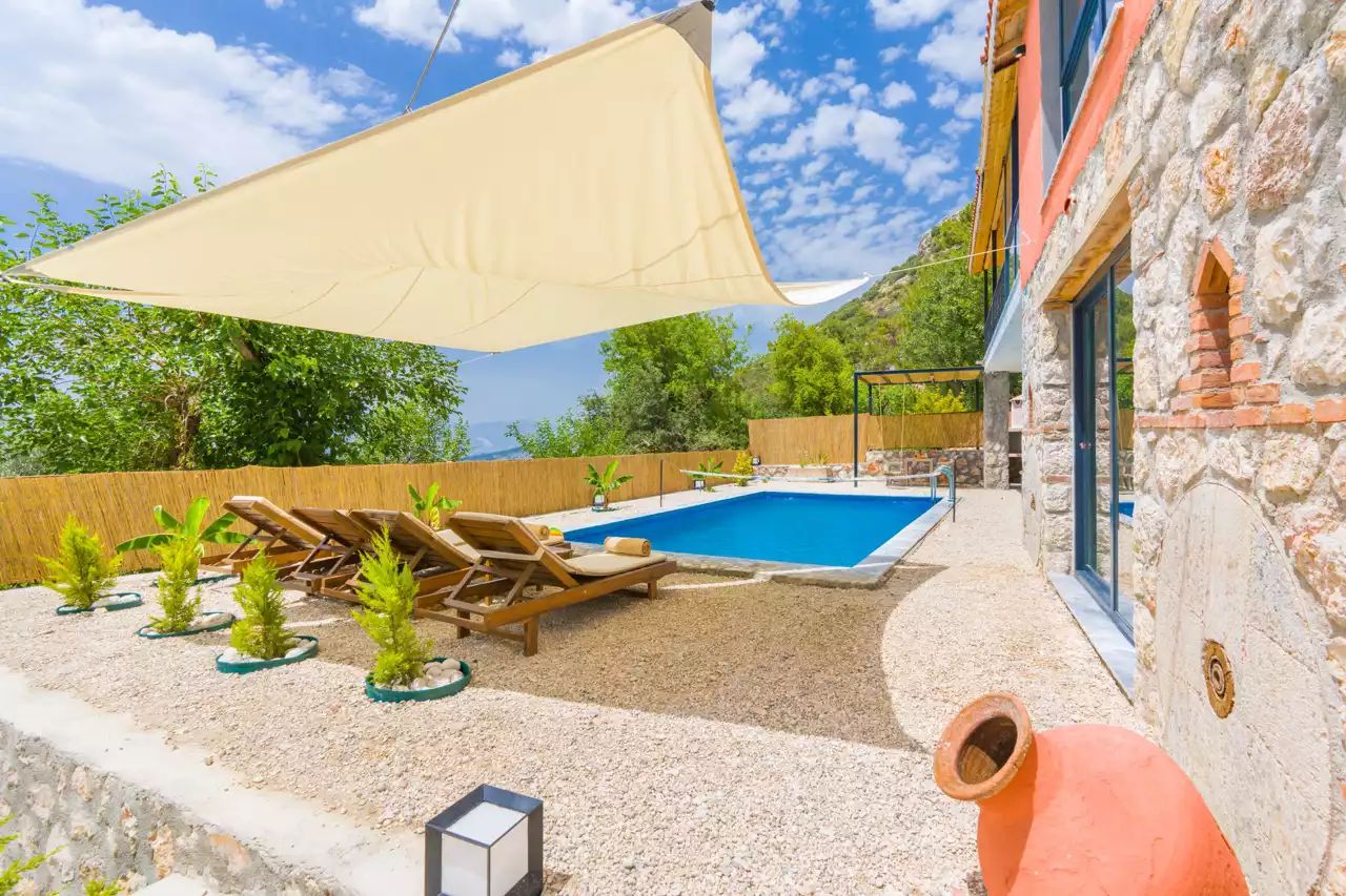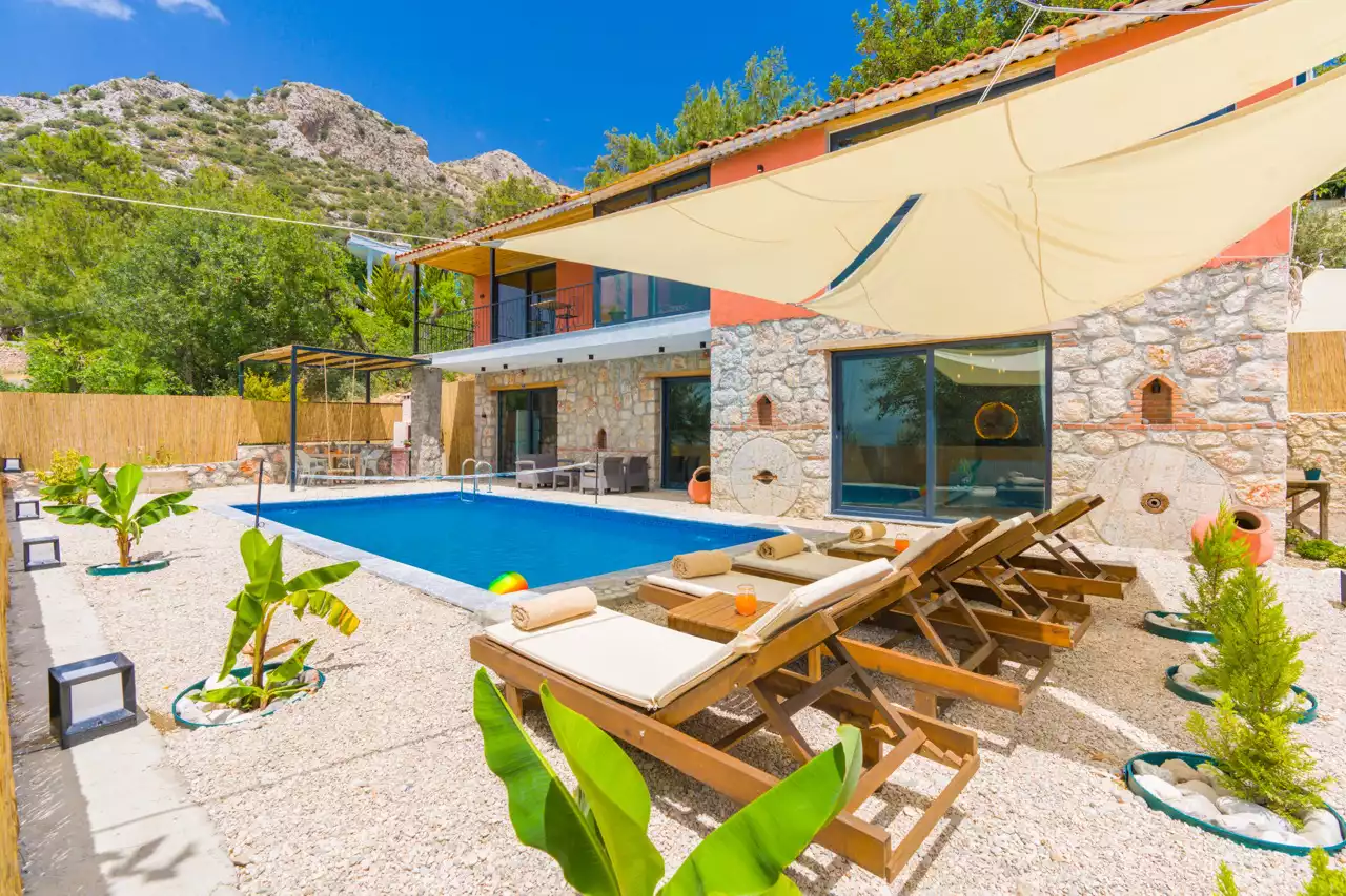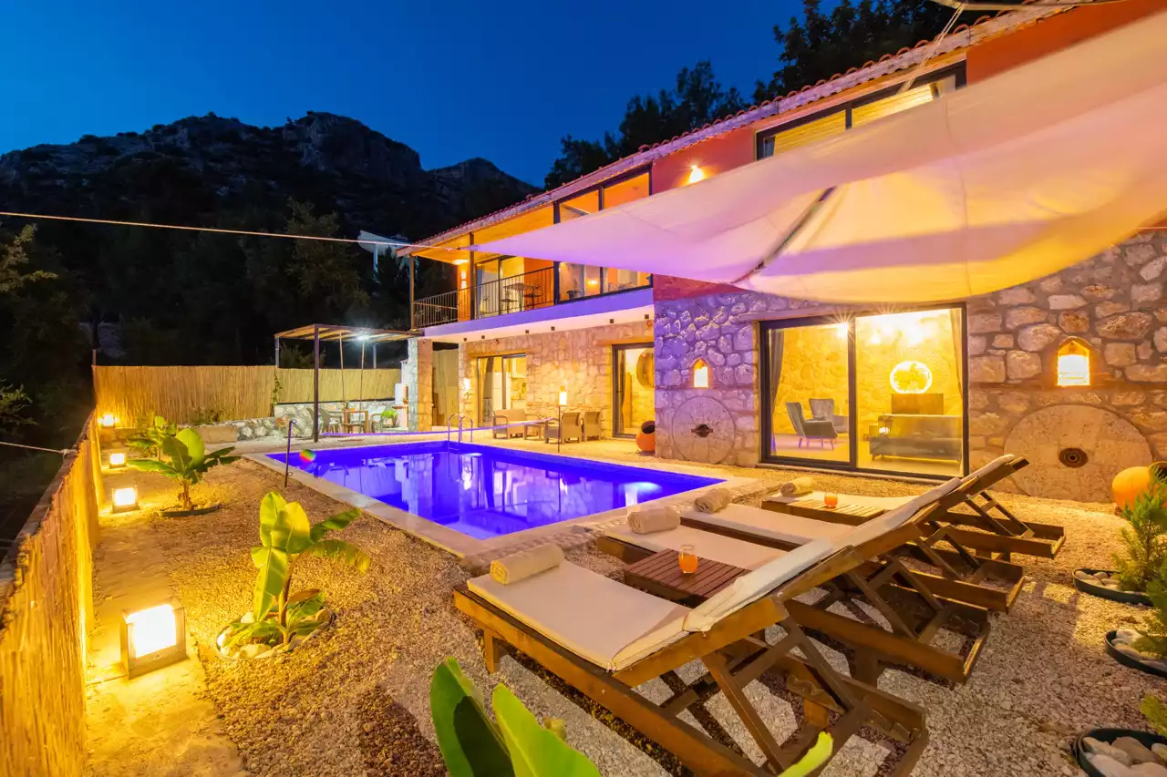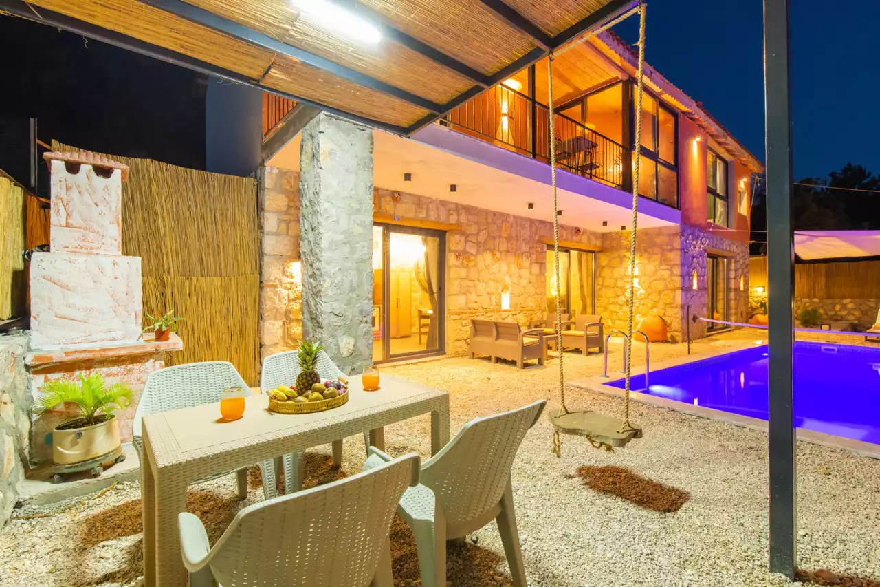 Kalkan Üzümlü bölgesinde konumlandırılmış 4 kişilik, doğa içerisinde, muhafazakar, jakuzili, özel havuzlu kiralık villadır. Kiralık Villa Grand Ata, muhafazakar villalar, jakuzili villalar, doğa içerisinde villalar ve balayı villaları kategorisinde bulunmaktadır. Villamız 2 yatak odalı 4 kişi konaklama olanağı sahip olup; sizlere unutulmaz bir tatil sunmaktadır. Ayrıca uçsuz bucaksız manzaraya sahip olan villamız, sizleri kuş sesleri ve doğanın dinginliğiyle de mest eder. Sessiz, sakin bir ortam içerisinde ki villamız, doğayı ve köy yaşantısını keşfetmek isteyen tatilcilere evlerindeki rahatı ve huzuru aratmayacak modern standartlara uygun döşenmiştir. Balayı çiftleri ve muhafazakar aileler için uygun olan villamızda ayrıca jakuzi bulunmaktadır.