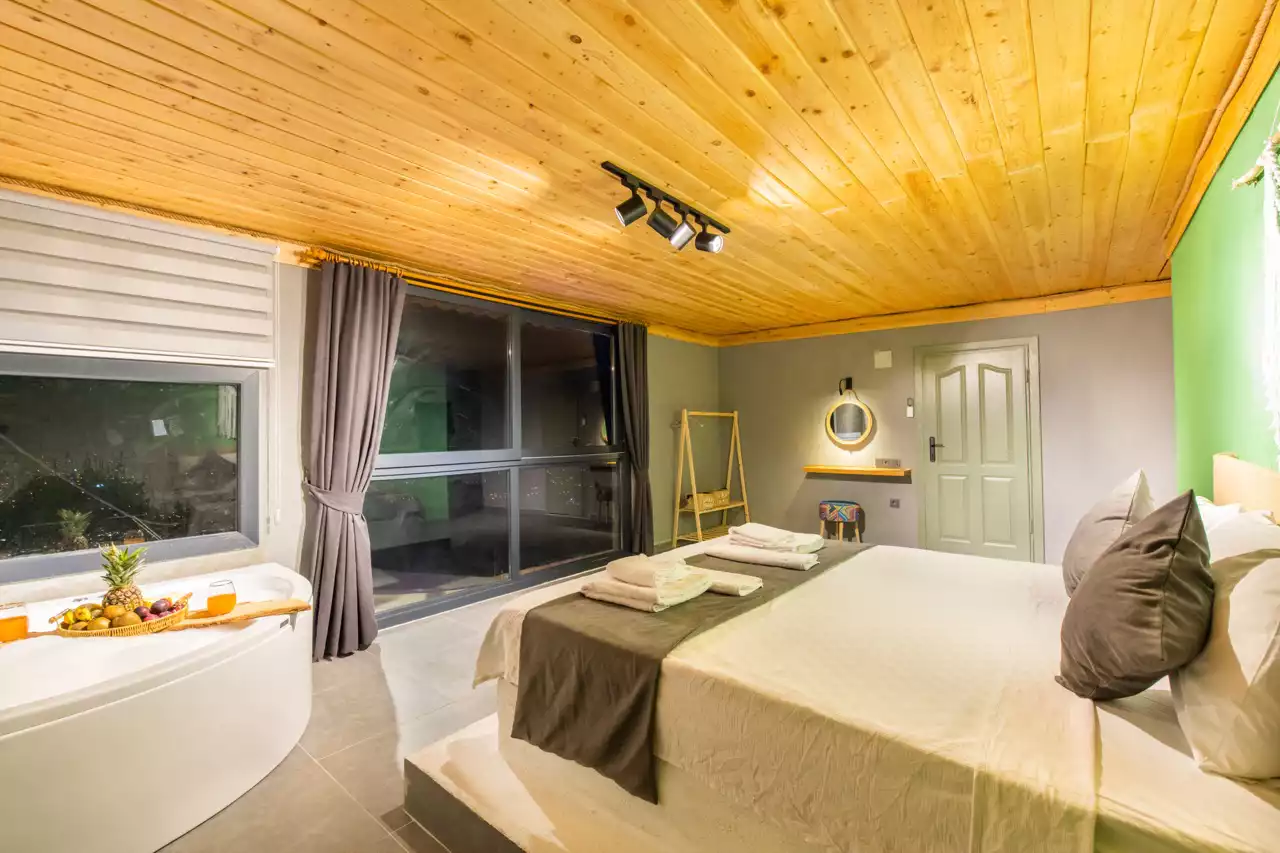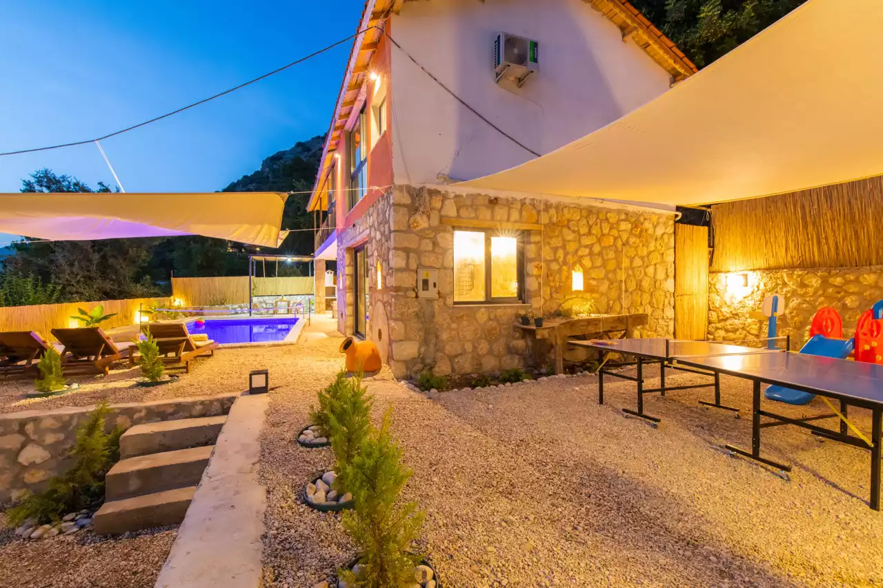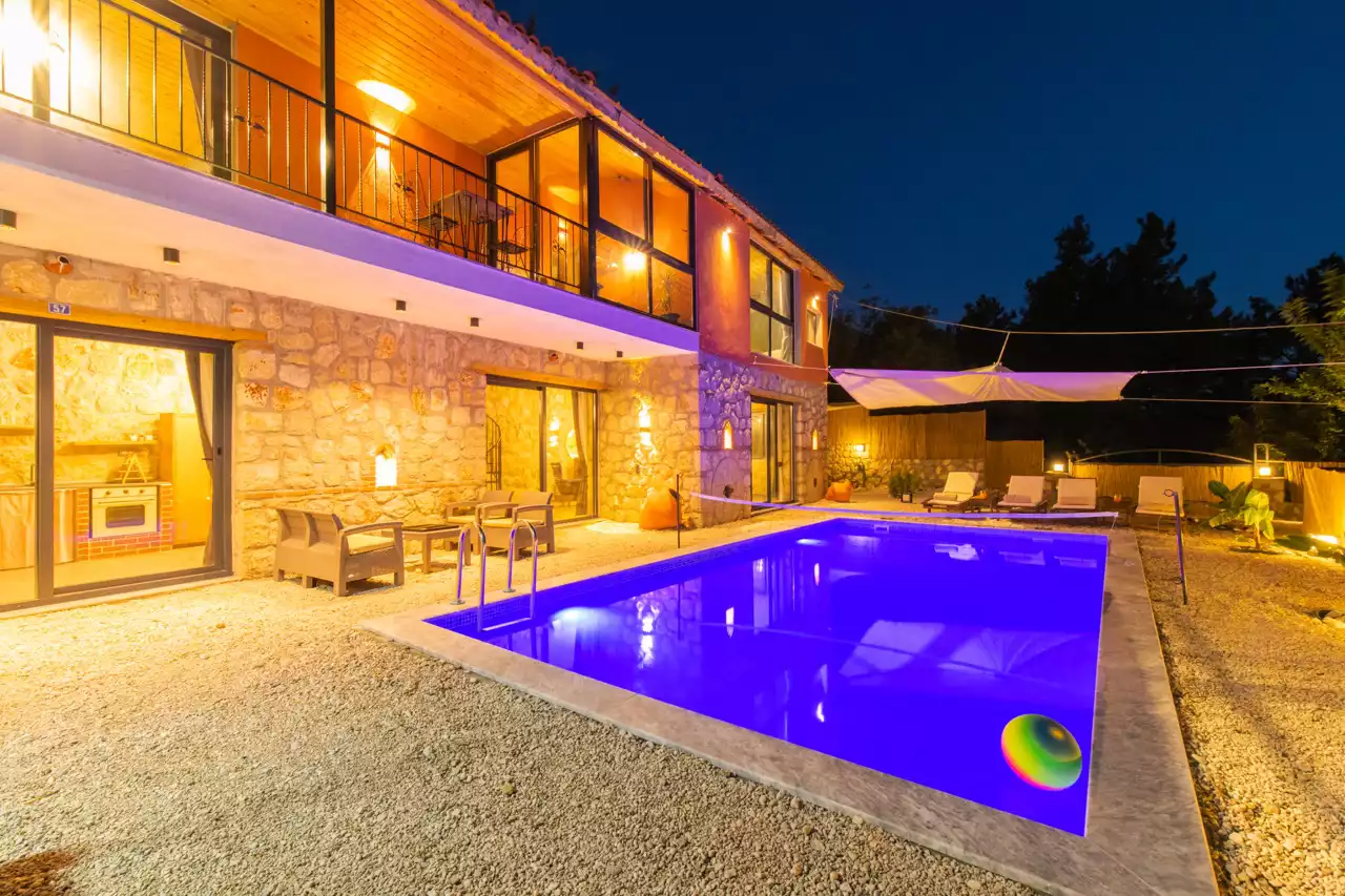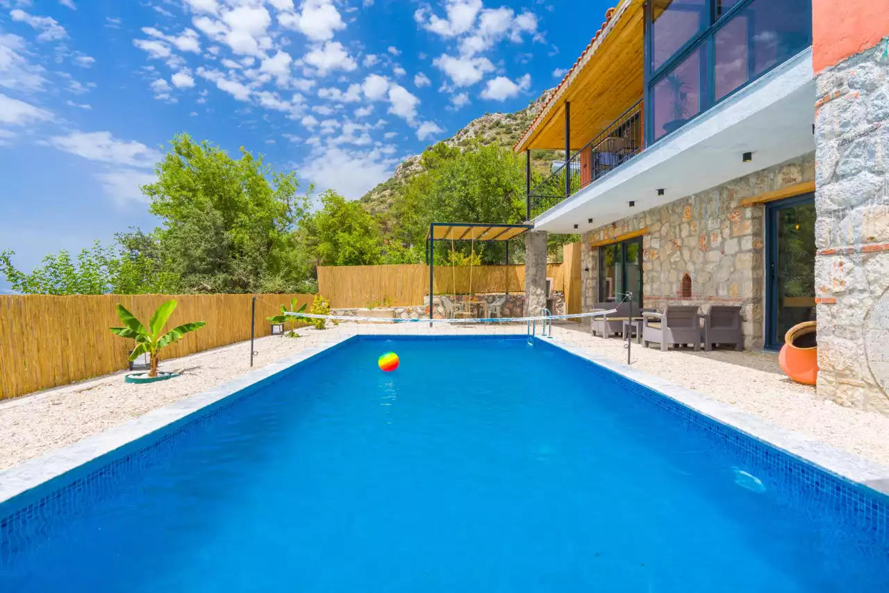 Kalkan Üzümlü bölgesinde konumlandırılmış 4 kişilik, doğa içerisinde, muhafazakar, jakuzili, özel havuzlu kiralık villadır. Kiralık Villa Grand Ata, muhafazakar villalar, jakuzili villalar, doğa içerisinde villalar ve balayı villaları kategorisinde bulunmaktadır. Villamız 2 yatak odalı 4 kişi konaklama olanağı sahip olup; sizlere unutulmaz bir tatil sunmaktadır. Ayrıca uçsuz bucaksız manzaraya sahip olan villamız, sizleri kuş sesleri ve doğanın dinginliğiyle de mest eder. Sessiz, sakin bir ortam içerisinde ki villamız, doğayı ve köy yaşantısını keşfetmek isteyen tatilcilere evlerindeki rahatı ve huzuru aratmayacak modern standartlara uygun döşenmiştir. Balayı çiftleri ve muhafazakar aileler için uygun olan villamızda ayrıca jakuzi bulunmaktadır.