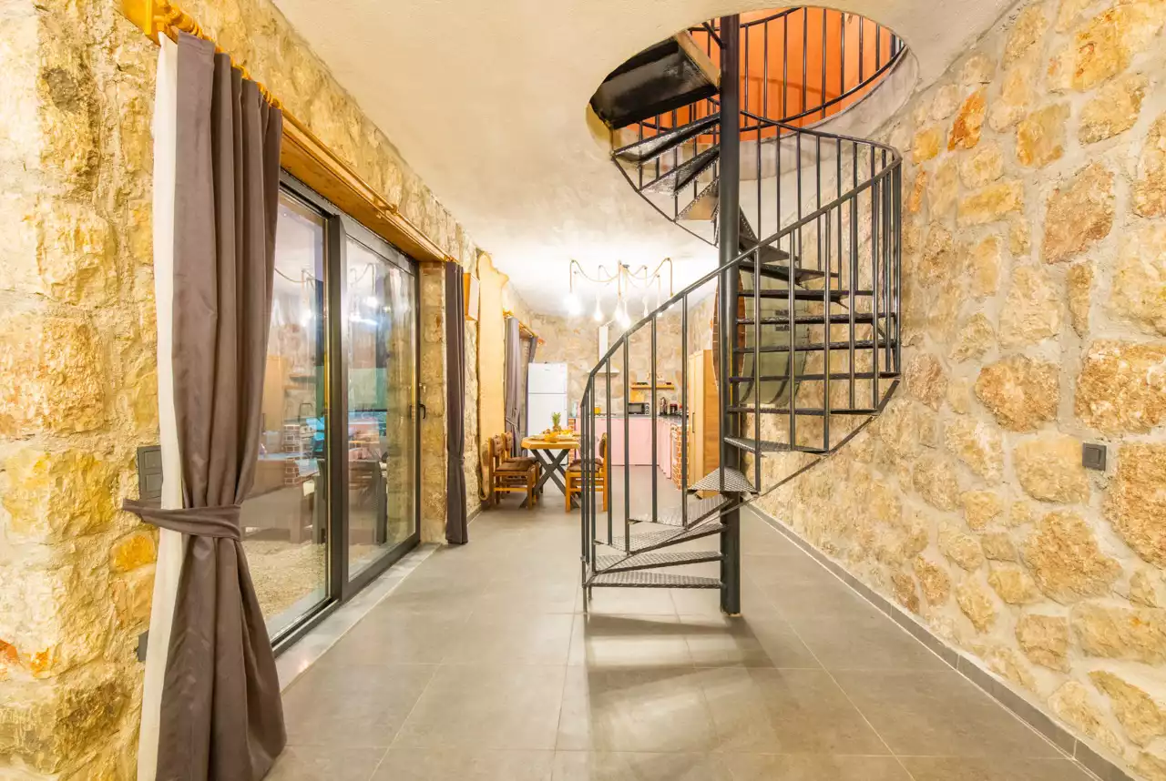 Kalkan ve çevre köyleri, coğrafi yapısı bakımından dağ yamaçlarına konumlanmış yerleşim birimlerinden oluşmaktadır. Bu nedenle villalara ulaşım sırasında yokuş yollar ve stabilize (toprak) yollar bulunmaktadır. (Bu not sadece bu villa ile ilgili değildir. Tüm villaların bilgilerinde yazmaktadır.)