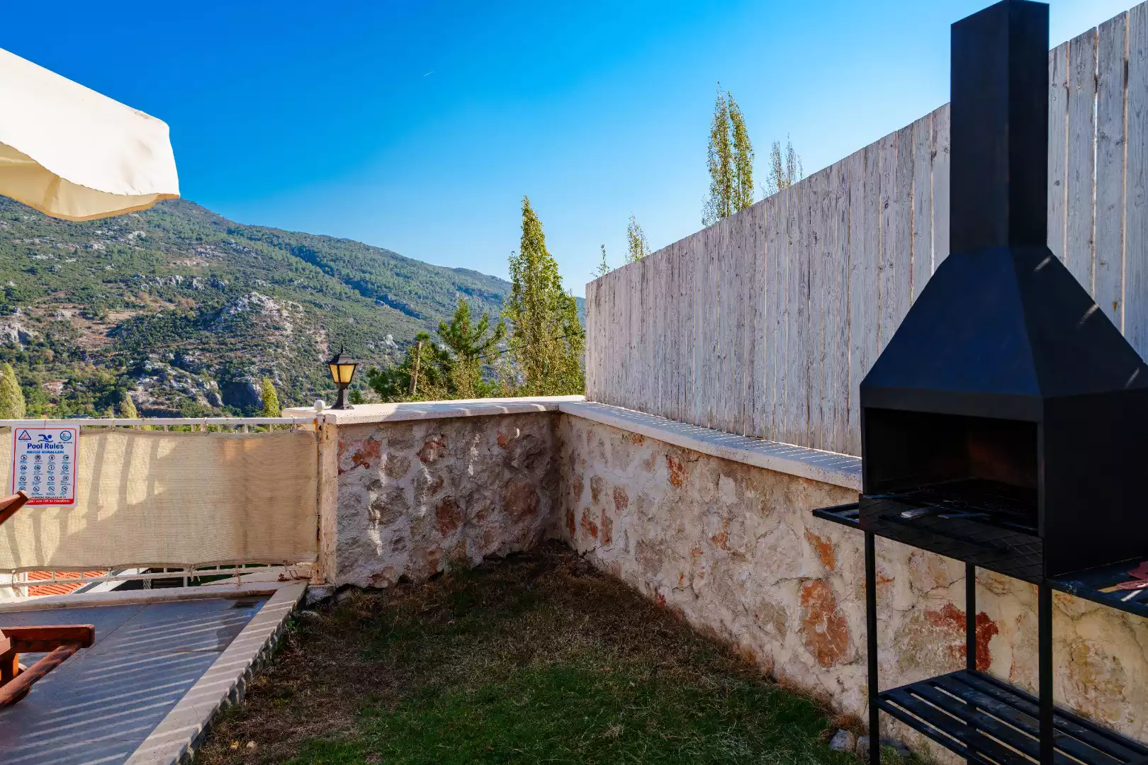 Not: Doğa içerisinde yer alan tüm villalarımızda düzenli olarak ilaçlama yapılmaktadır. Buna rağmen çevrede; kelebek, böcek, sinek, haşere türü hayvanların bulunma ihtimali maalesef vardır. Herhangi bir mağduriyet yaşamamanız adına yanınızda koruyucu vücut spreyi getirmenizi tavsiye ederiz.(Bu not sadece bu villa ile ilgili değildir. Doğa içerisinde konuma sahip olan tüm villaların bilgilerinde yazmaktadır.)