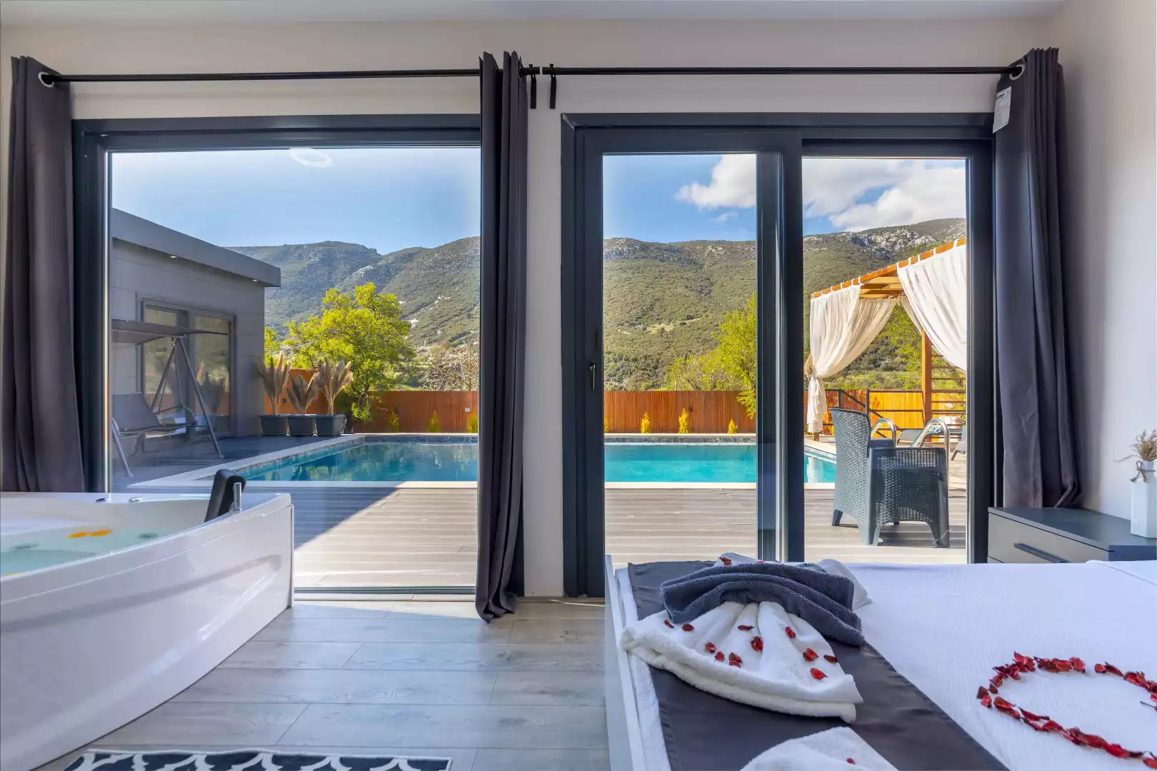 Villalarımızın/apartlarımızın Yüzme Havuzu ısıları; hava durumuna ve mevsimsel sıcaklığa göre değişkenlik gösterir, villayı/apartı kiralayan müşteri, havuzun soğuk olmasından dolayı havuza girememesinden ve bu yüzden havuzu kullanamamasından SADE VİLLAM kesinlikle sorumlu tutamaz.